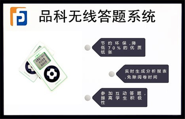 品科全新推出无线答题系统 让学生、老师更好的学习交流,厂家直销,价格优惠。 品科是一家专门致力于学校提升学生成绩,减轻教师压力的公司。近期为了让老师跟学生更好的交流,促进学生学习,我们特推出一款新的产品—品科无线答题系统。 无线答题机在测评中的具体应用: 教学分析与评估 做好教学评估,提高教学质量,是每个学校教学工作的重点之一。教学测评系统可以根据每次活动的真实记录,全面客观的将各个班级的教学状态、效果科学呈现,以便于有针对性地培养学生。 在政府行风评议、绩效考核中的具体应用 每年我国各级地方政府都要对各个行政部门进行行风评议、绩效考核,以往采用的手段主要是人工录入相关信息、通过填涂答题卡利用光标阅读机采集信息,上述方式对于分散采集、统计信息的及时性没有要求,而对于多人现场同时测评的情况,则不能实时进行统计分析,采用无线答题机的方式进行测评,采集和统计结果不会超过1分钟的时间,测评结果立即显示,能充分体现测评的公开、公平、公正。 无线答题机在选举中的应用 1、 无线答题机系统还可用于各种选举、无记名投票、评选先进、表演评分、知识竞赛等活动,并同步生成准确的选举结果报表。 2、 在电视现场选择支持喜爱的选手投票。 全国招商销售电话:15203381704 官方网站:www.akomr.com