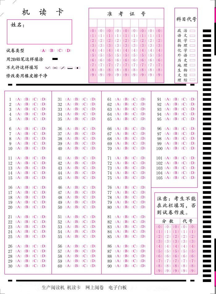 答案卡与学生卡类型不一致会有“A传感器同步框计数值超界”这样的错误,怎么办?又到期末了,很多学校在考试中都会使用答题卡,既能减轻老师判卷的压力,又能提高准确性,一般学校阅卡会有专人负责,考试后监考老师收取学生的答题卡交到阅卡部门,由判卷老师填涂一份标准答案卡,这时就会有这样的问题,比如学生用的是50题的小卡,老师的答案涂的是105题的大卡,怎么办,在按答按涂张小卡吗?其实是有办法处理的。