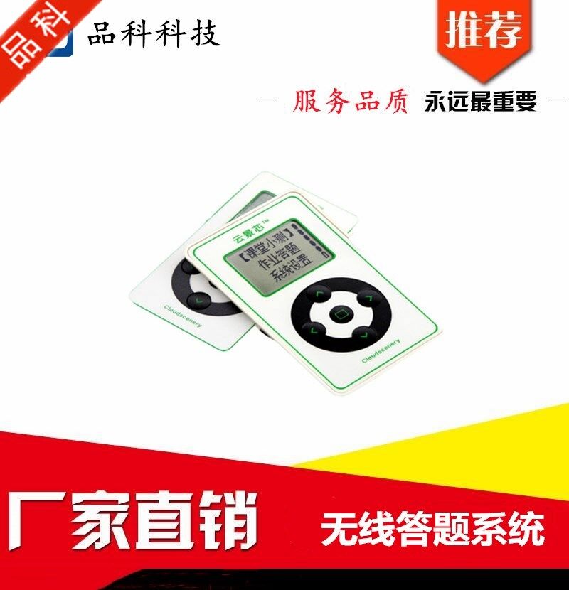 无线答题器特点:支持教学互动+课堂答题+考试测验+课后练习实时掌控学习进度,快速提高课堂教学效率,1.增加参加课程的学生人数 2. 提高学生参与的积极性 3. 定期反馈学生学习情况。 4. 课堂答题器,课堂互动答题反馈系统是帮助教师快速收集并分析学生对课堂上问题反馈的教学技术。该系统通常按以下方式使用,首先是教师向学生提问,通常为多项选择题。学生先思考问题,然后使用手持式无线传输器(一般称为答题器)提交问题答案,该答题器可向教师电脑外接的接收装置发送信号。电脑上的软件会生成图表,显示学生答案的分布情况。然后教师根据这些结果确定课题进程,让学生就手头的问题开展小组讨论或班级讨论。.